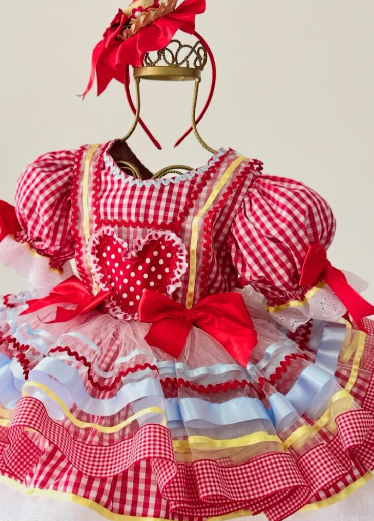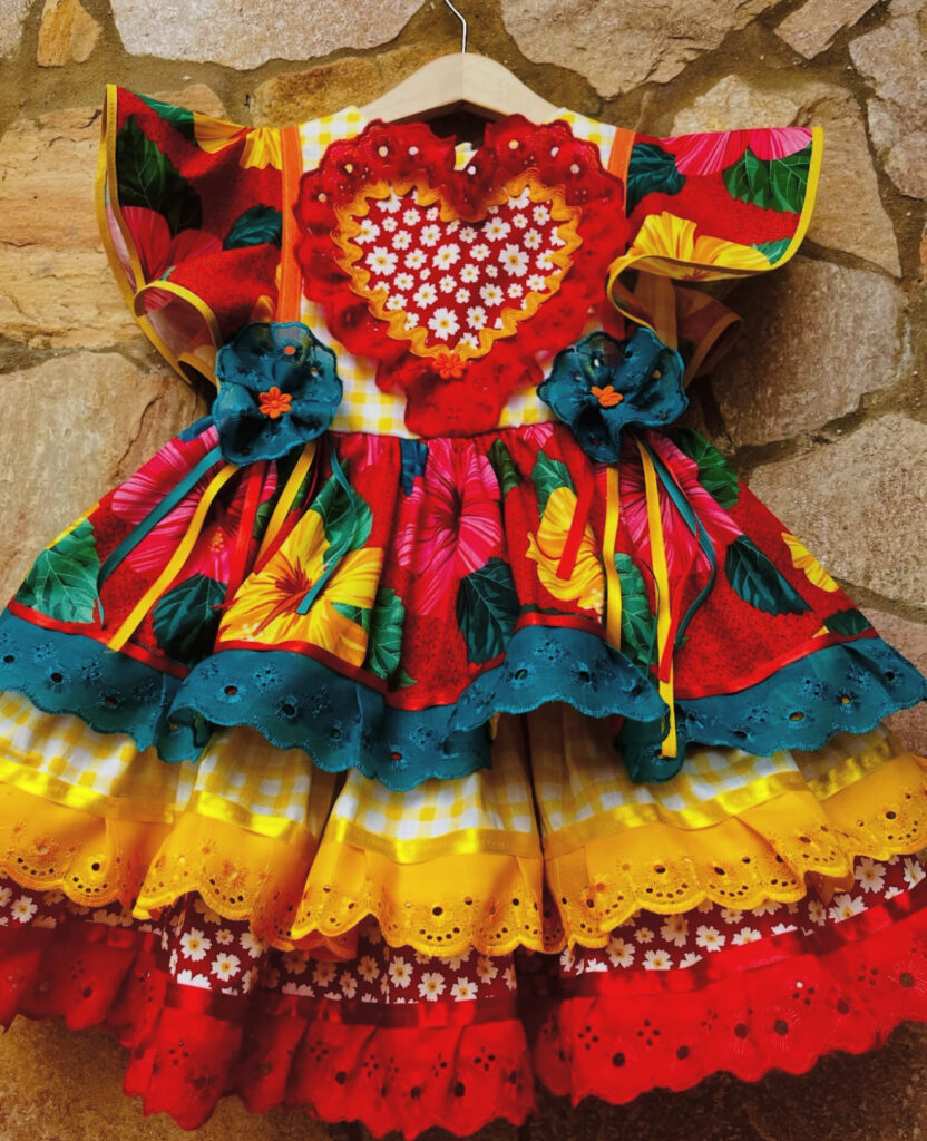 Os acessórios de cabelo fazem toda a diferença na produção junina! Laços coloridos, fitas trançadas no cabelo, tiaras com flores e até mini chapéus de palha dão aquele toque final cheio de fofura (e rendem fotos lindas!).